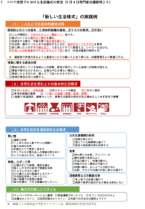 各事業者が感染対策を講じる際の基本的考え方の確立(現在、有識者会議で作成中。次回有識者会議で発表される見通しです)それを踏まえ、各業界団体を中心に、業種別のガイドラインの策定が求められます。