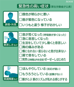 - すでに重篤な場合は接触者のいない別室に移し医療機関の指示をあおぎましょう。